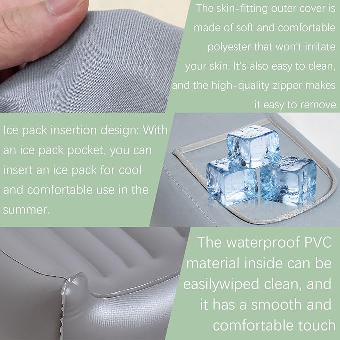 • 【Easy Cleaning and Effortless Operation】The removable cover facilitates hassle-free cleaning, promoting a hygienic and sustainable lifestyle. Its reusable nature makes it the perfect choice for the environmentally conscious individual.Using the pillow is a breeze. Simply inflate it using either an air pump or by blowing into the valve, ensuring convenience and ease of use.then deflates to a compact size, saving precious space when traveling.