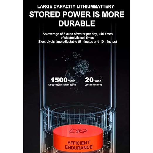 • [High Hydrogen Ion Concentration] With a single cycle, this Ionized Water Bottle rapidly generates hydrogen ions up to 2000ppb (1.2ppm) in 5 minutes or 5000ppb (1.2ppm) in 10 minutes. 230ml large capacity ensures sufficient supply of hydrogen water.