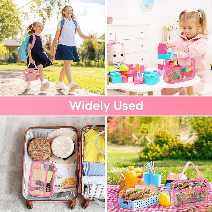 • TRANSPARENT DESIGN: The large zippered storage bag is transparent, so you can see the items in the bag clearly. It's also easy to classify and find, allowing you to quickly and easily take out the items you need and save time. The toy organizer bag features two carrying handles and a strong load-bearing capacity, making it easy to carry outside the house.