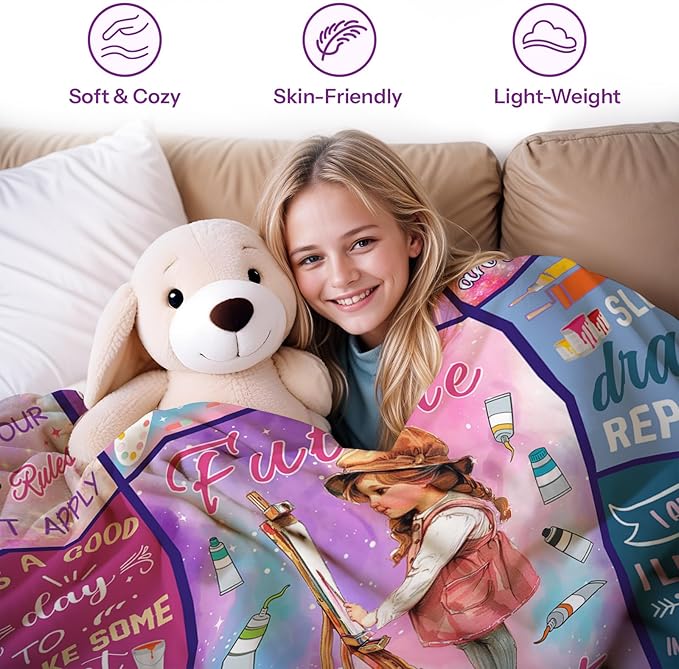• Artist Gifts: This artist blanket is specially designed for art lovers, artists, art teachers, children studying art, etc, is not only to bring warmth, but also to bring love, it is a great gift when you give it to your family or friends who study art