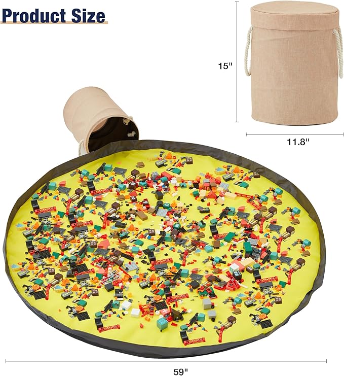 • Looks Better Storage-Our toy basket is a 11.8" wide x 15" tall , with a 59" playmat for creative play. Just use 1 bag for all your kid toys, cars, action figures, dolls.