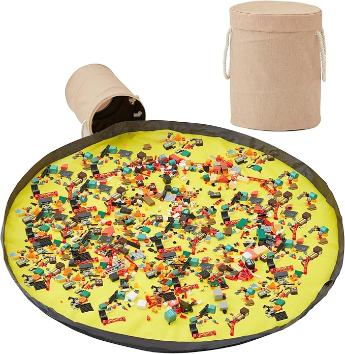 EXQ Home Toy Storage Basket and Building Bricks Toy Play Mat for Kids Rooms (11.8 x15 inches) - Organizer Storage Organizer for Toys, Playroom Canvas Bag Gift for Boy/Girls Beige