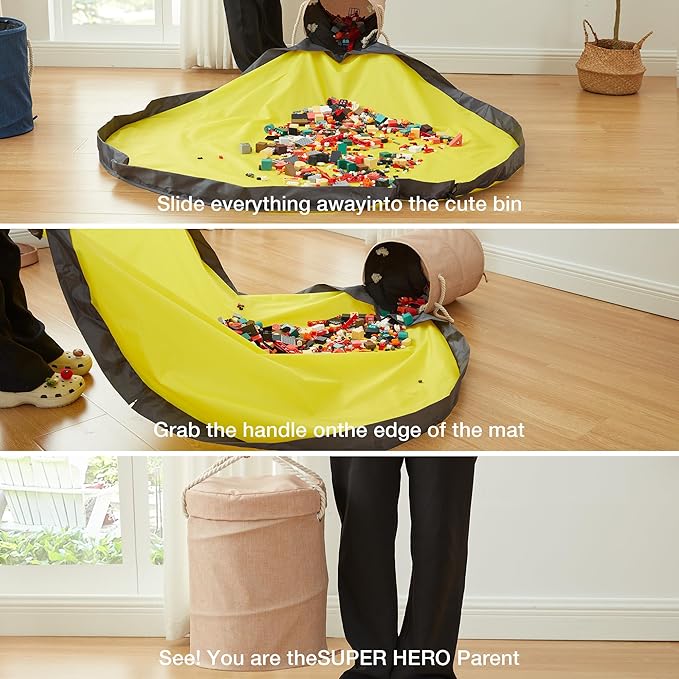 • Made To Last-Our toy storage basket made of durable oxford cloth, The play mat adopts waterproof material, you can rest assured that the child can use it in the room, it can also be used in your outdoor camping, beach, or picnic in the park.