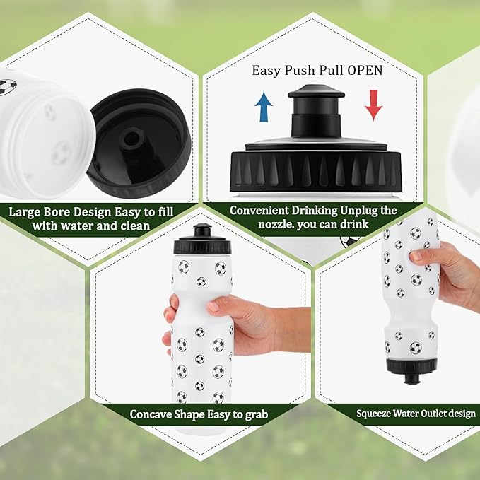 4 Pcs Soccer Party Favors Sports Drawstring Bag 24 oz Soccer Reusable Water Bottles Sports Water Bottle for Sporting Cycling Working Traveling Gym Outdoor