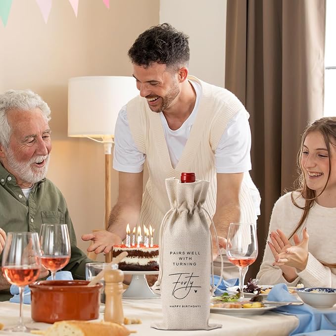 • 【40th Birthday Gifts Ideas】Don't just stop at 40th birthday wine bag bottles! This fun 40th birthday wine bag is the perfect addition to a birthday party, and also it's a perfect gift idea. Because in addition to decorating wine bottles, it can also store various holiday gifts, making every holiday full of ritual, making it a must-have for every holiday you celebrate!