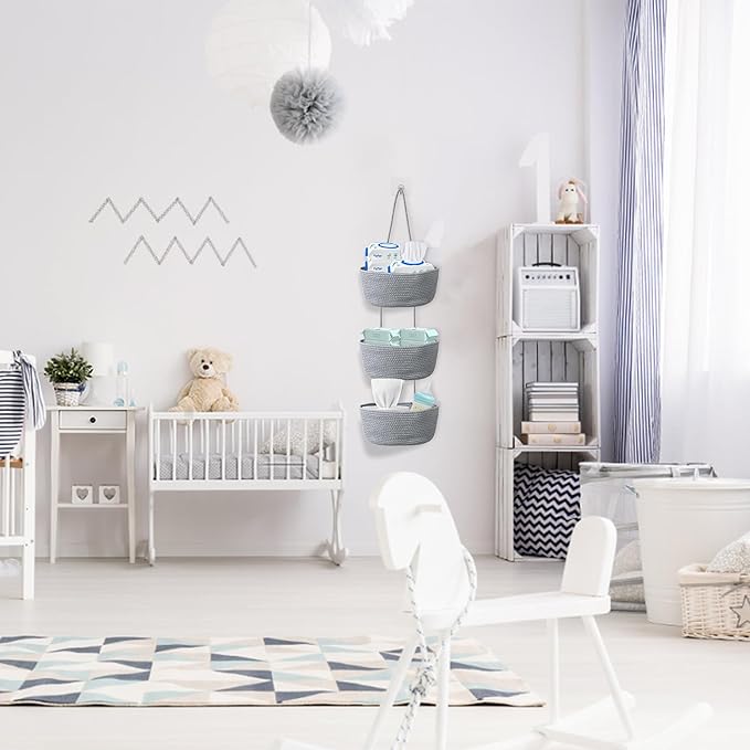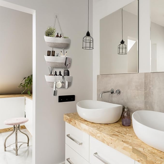 • DETACHABLE DESIGN: Hanging wall baskets strung together with rope can be detached to become 3 separate storage rope baskets with sticky hooks for you to hang the baskets. When not in use, it can be folded up and put in the cabinet, not occupy space