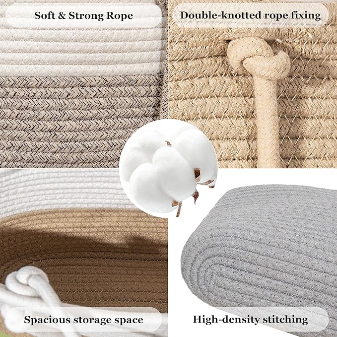 • STRING HANGING: Hanging storage baskets with spring steel hooks are designed in a unique stacked storage way, which rationally utilizes vertical space and makes your home look organized. Wall-mounted rope baskets can help you create personalized home decor