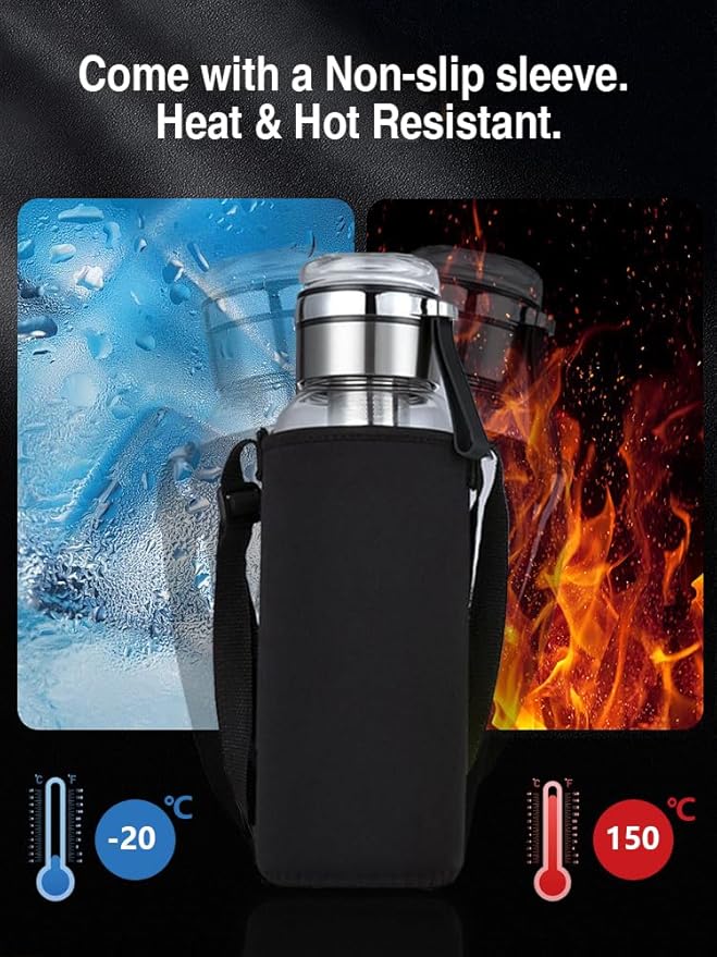• 1. Enjoy your Drinking Safely: This water bottles are made of premimun borosilicate, whose temperature resistance range from -20°C to 150°C. This ensures your joyful drinking without any problem.