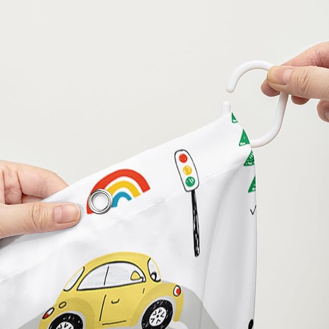 AILONEN Construction Shower Curtain, Truck Fire Engine Police Car Bath Curtain for Kids Boys,Red Yellow Blue Truck Car Bathroom Decor Waterproof Fabric 36" W*72" H Inch with 12 Plastic Hooks