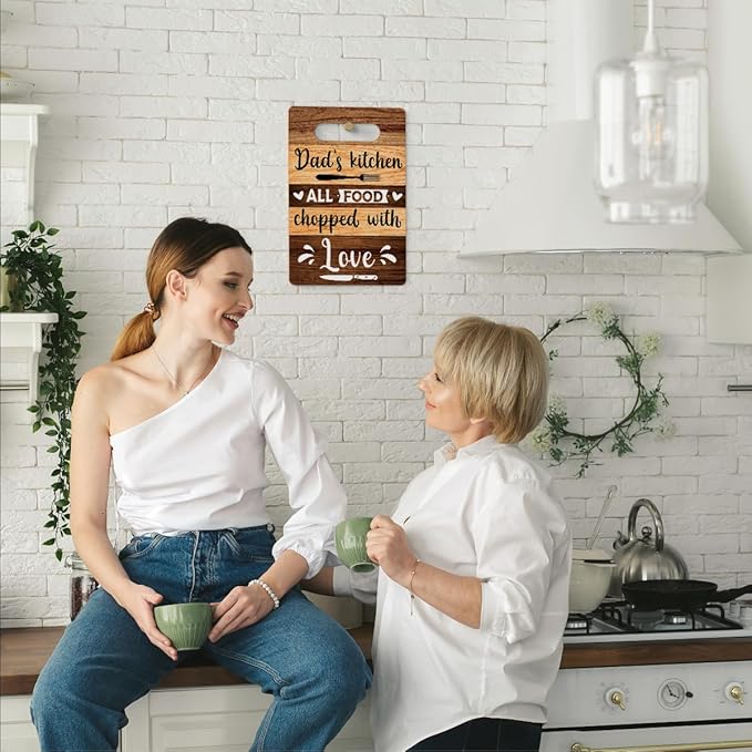 Farmhouse Kitchen Decor, Kitchen Signs Wall Decor, Dad's Kitchen All Food Chopped With Love Wood Sign, Fathers Day Thank You Gifts for Dad, Dads Birthday Gifts Ideas 8 x 12 Inch