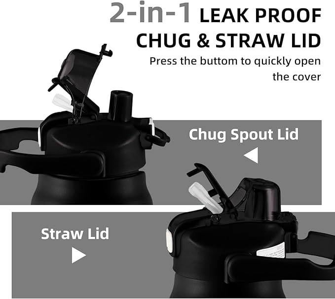 • ✔【2-in-1 Chug & Straw Lid】The 2-in-1 lid design converts into both a chug lid and a straw lid for easy use. When using the water jug, there is no need to change the lid, saving space and time.