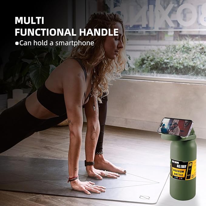 • ✔【Dual Use Handle】The water jug with an expansive handle that can hold a smartphone. Crafted from material without BPA, it is robust and portable, suitable for gym, camping, hiking, travel, etc.