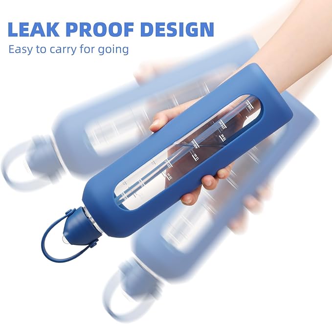 • 【HUMANIZED DESIGN DETAILS】The 20 oz glass water bottle featured with straw lid with premium handle lid, 100% leak-proof.The motivational 1 Liter glass bottles have two ways to drink water by a high quality straw and drink directly after remove the lid, which is very convenient and fast,and it also conveniently fits in cup holders.