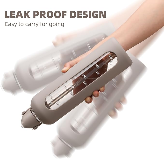 • 【HUMANIZED DESIGN DETAILS】The 32 oz glass water bottle featured with straw lid with premium handle lid, 100% leak-proof.The motivational 1 Liter glass bottles have two ways to drink water by a high quality straw and drink directly after remove the lid, which is very convenient and fast,and it also conveniently fits in cup holders.