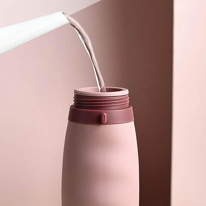 Premium Collapsible Silicone Water Bottle - 600ML, BPA-Free, Medical Grade, Leak Proof, Foldable ,Roll-Up Portable Sports & Outdoor Water Jug - 20oz Travel-Friendly, Reusable Drinking Bottle (Pink)