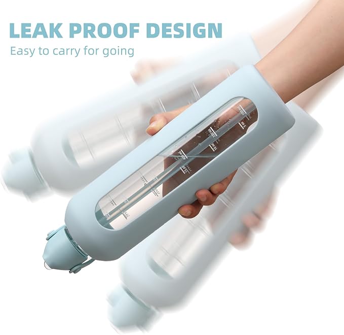 • 【HUMANIZED DESIGN DETAILS】The 20 oz glass water bottle featured with straw lid with premium handle lid, 100% leak-proof.The motivational 1 Liter glass bottles have two ways to drink water by a high quality straw and drink directly after remove the lid, which is very convenient and fast,and it also conveniently fits in cup holders.