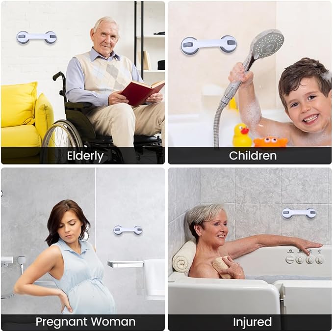 • ROBUST & RELIABLE: Made from durable plastic, CIVJET shower handles for seniors feature two strong suction cups for enhanced stability. They provide reliable support when using shower stools or chairs, ensuring a safer shower experience without the worry of slipping