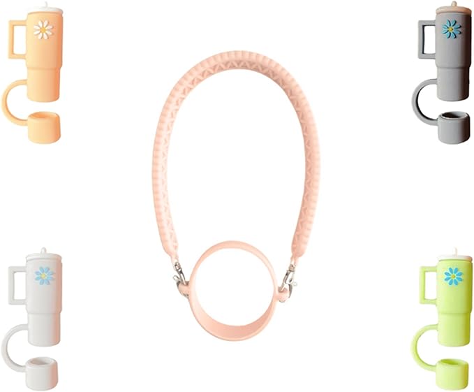 Stanley Accessories Water Bottle with Strap Bottle Sling Carrier with Handle Attachment Fits Most 8-40oz Tumbler & Stanley + 4Cute Straw Covers 3D Straw Toppers Gift Set-Cup