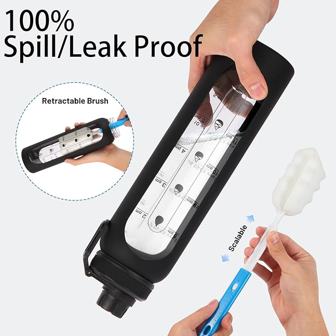 • 【Large Capacity】The bottle has a capacity of 34OZ/1L, with marked graduations up to a maximum of 26 OZ/750ML, featuring time markings