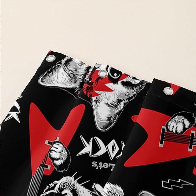 AILONEN Kitten and Puppy Shower Curtain,Rock Kitten Puppy Bath Curtains for Kids Boys Girls,Animal Polyester Waterproof with 12 Plastic Hooks 60" W*72" H