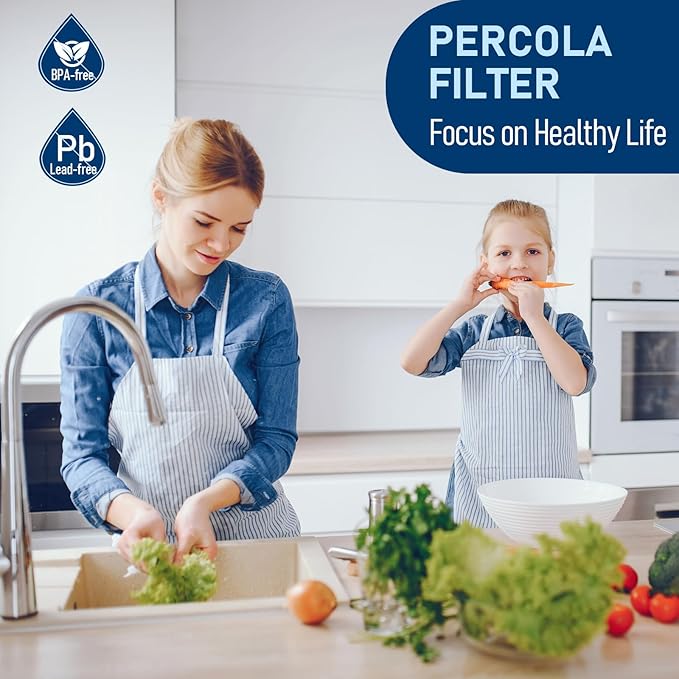 • Triple Stage Filtration: Featured with 0.5 micron small pore size, PERCOLA filters are equipped with Triple Action Filtration. First stage non-woven media captures the larger particles, then in the second stage, the pleated sub-microns membrane reduces particles as small as 0. 5 microns, and finally, the carbon block reduces chlorine taste, and odor and select VOCs.