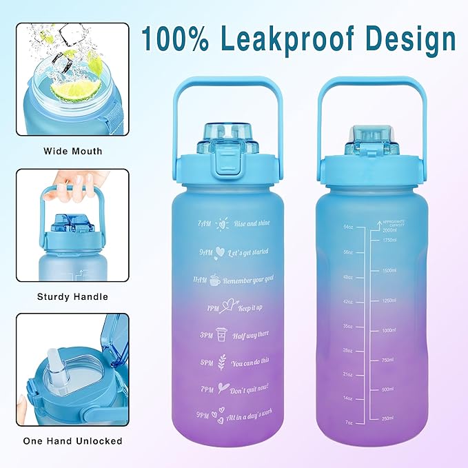 • Looking for a perfect gift to keep your loved ones healthy and hydrated? Look no further than our 64 oz water bottle. It is both functional and aesthetically pleasing, available in various vibrant patterns. Please avoid putting our half-gallon water bottle with a straw in the dishwasher; instead, clean it with baking soda and vinegar. If you encounter any issues with our water bottle, please contact us, and we will provide the best possible solution.