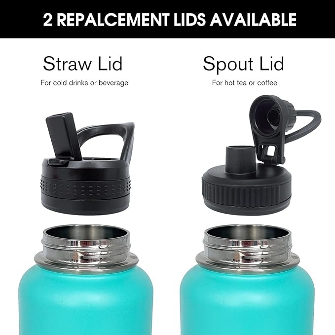 • 【Spout Lid & Straw Lid】 This water bottle comes with 2 lids: an innovative leak-proof spout lid and a newly improved straw lid that has been enhanced for better flow. Easily fill your water bottle with ice and clean it through the wide mouth opening. Both allow easy one-handed or hands sipping, they are designed for you to drink anytime, anywhere.