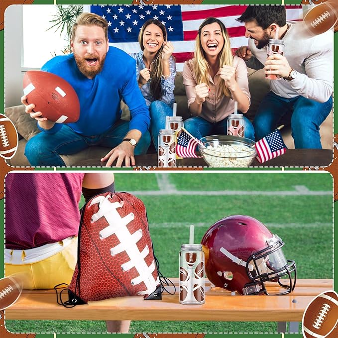 • Suitable Sizes: our football cups are designed with an approximate size of 14.2 oz/ 420 ml in capacity, 2.36 inches/ 6 cm in diameter and 6.1 inches/ 15.5 cm in height, including a 9.06 inches/ 23 cm straw; The drawstring bags provided have an ideal size of 12.6 x 16.93 inches/ 32 x 43 cm, making them spacious enough for the cups and more