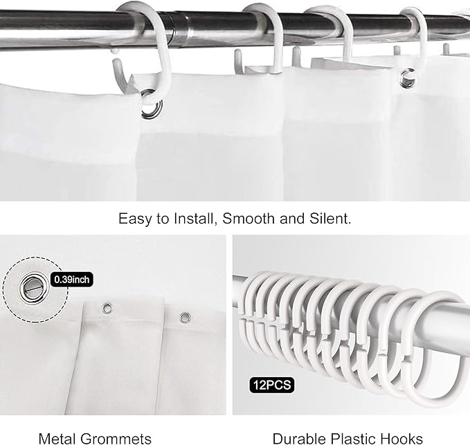 • ♥WHAT'S INCLUDED: Each package provides one 60” Width x 71” Length polyester shower curtain and 12 pack hooks.