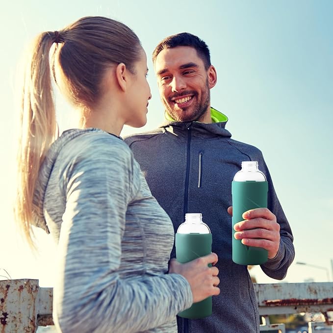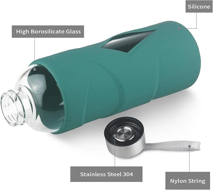 • πŸ’— STYLISH & PORTABLE: Take it everywhere! Our sleek design makes the glass water bottle has an ideal travel body and elegant appearance. Soft neoprene sleeve with handle offers secure grip and helps protect against breakage.