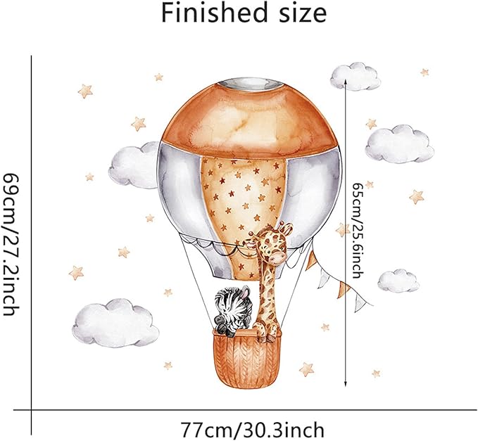 • 4. Versatile Decorative Options: These wall decals are not only great for walls but also suitable for furniture, mirrors, windows, and more. Create a playful and whimsical atmosphere in your home or classroom with these charming safari animal and hot air balloon designs.