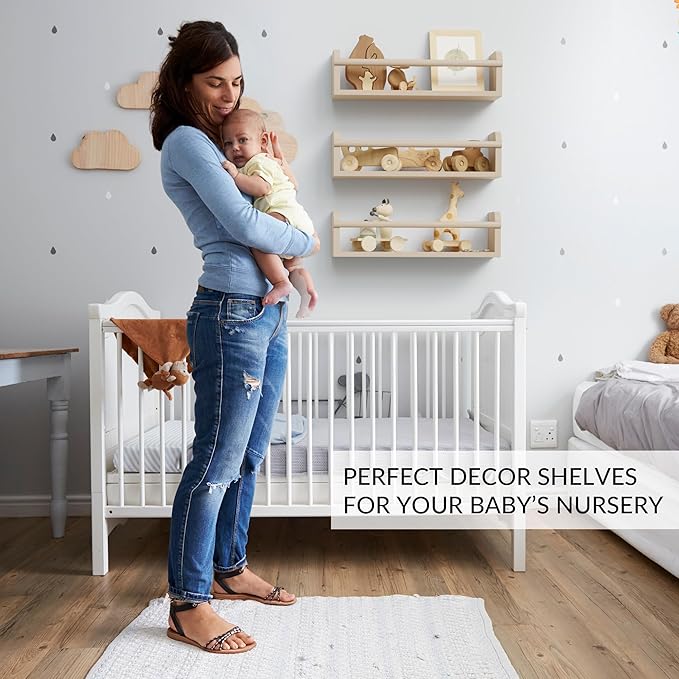 • Very Sturdy and Save: Thanks to its robust construction in solid wood, when mounted properly, you can place books or other heavier favorites on the nursery book shelves - without worrying about the toddler wall shelves falling down