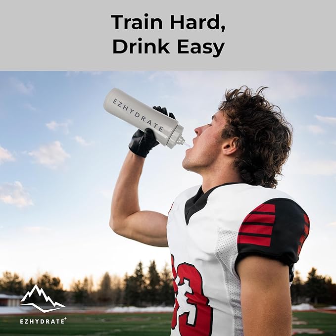 • DURABLE AND SAFE: The 32-ounce BPA-free sports water bottle is crafted from durable polyethylene that's easy to squeeze. This Ezhydrate water bottle equipment ensures safe hydration without harmful chemicals. Perfect for athletes, it fits most bike cages and is designed for rigorous use, making it a reliable Ezhydrate squeeze water bottle for any activity.