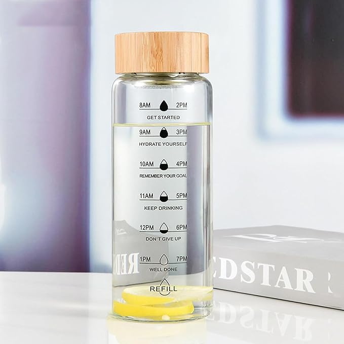• 25oz large capacity: The glass water bottle with time stamp has a large capacity of 25oz, which is suitable for most people's daily water intake. The wide mouth opening is easy to fill with water, ice cubes or fruit, and the leak-proof lid is convenient to carry.
