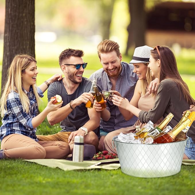 • 【LARGER SIZE】- The larger size of the galvanized tub allows for greater capacity, making it perfect for large gatherings and events. Whether you're hosting a backyard BBQ or a party with friends, the ice buckets for parties can hold enough drinks to keep everyone satisfied.