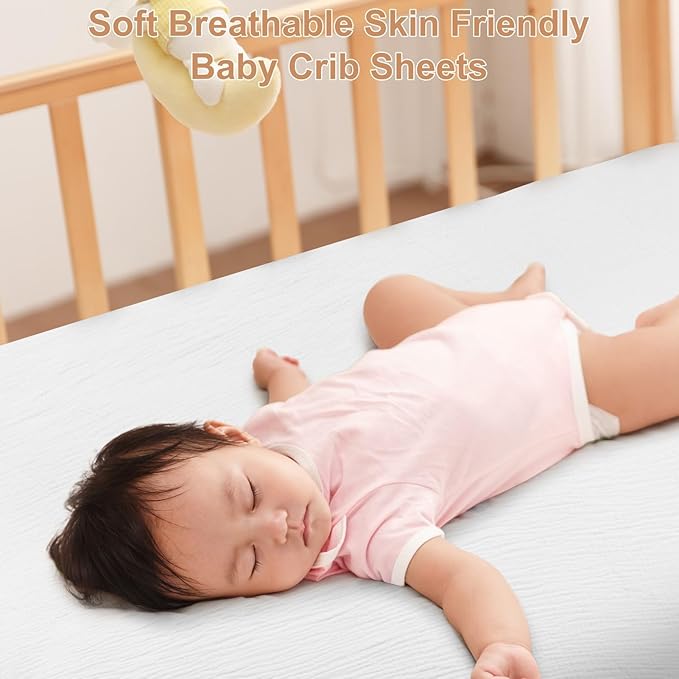 • 2 PACK SOFT BREATHABLE AND COZY MUSLIN CRIB SHEETS- Made of breathable and soft muslin cotton fabric, our crib sheet are gentle on your baby's delicate skin and can offer a soft and cozy surface for your baby to sleep and rest.