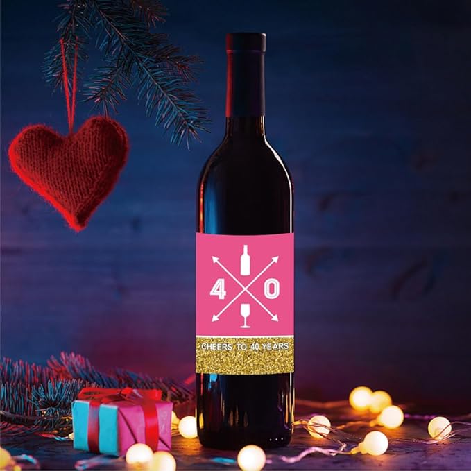 • CELEBRATE IN STYLE: Transform any bottle of wine into a personalized gift for someone special's 40th birthday with our 40th Birthday Wine Bottle Labels. The sleek black and gold pink design adds a touch of elegance to any celebration, making it truly unforgettable.