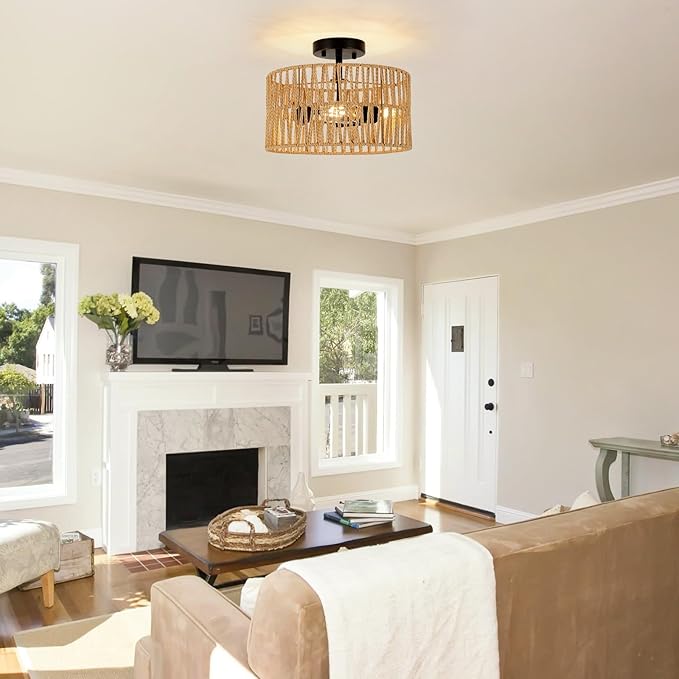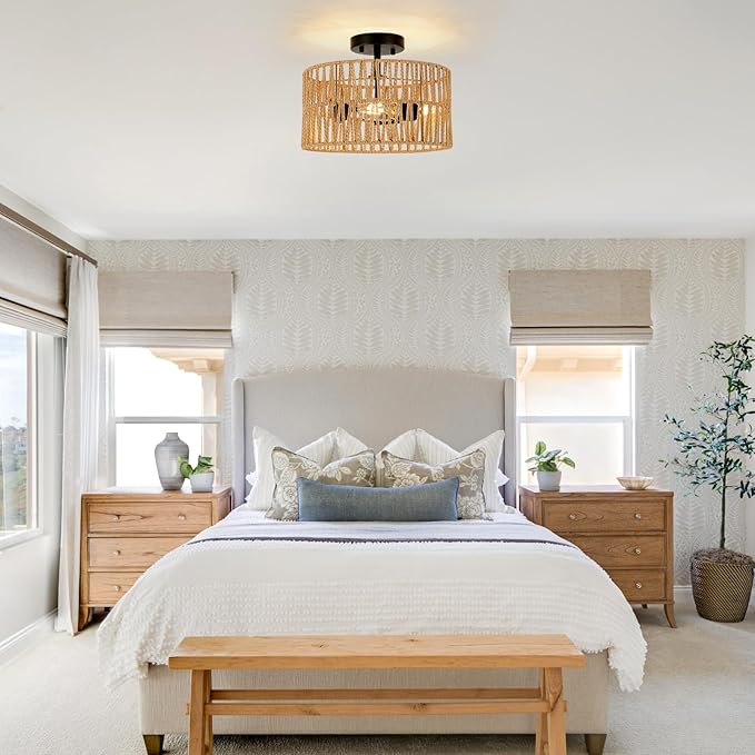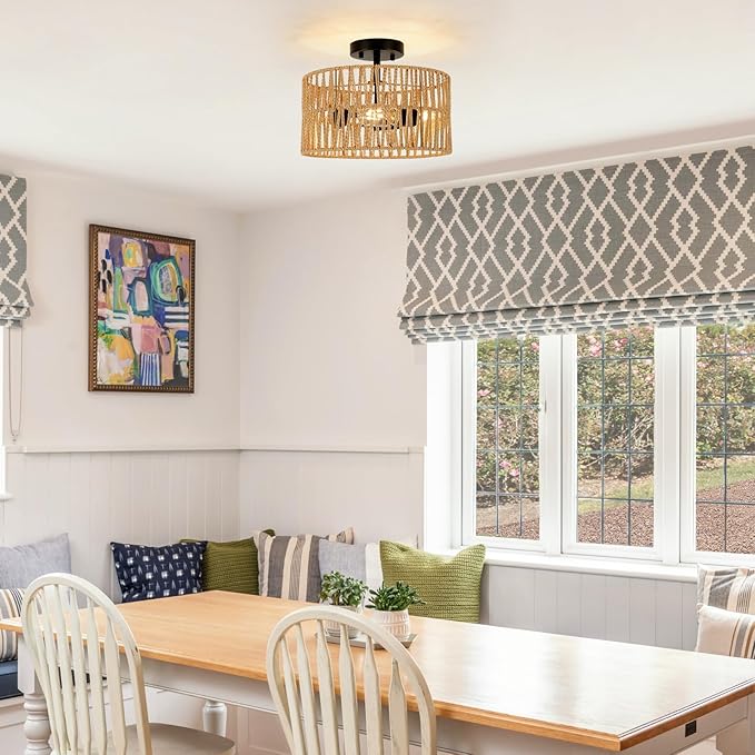 • Ideal for a Variety of Styles: The versatility of the rattan ceiling lamp makes it ideal for any home decor, from coastal to bohemian and rustic. Can be used as a bedside shade, in entrance hall, nursery, over a kitchen island, dining table and patio