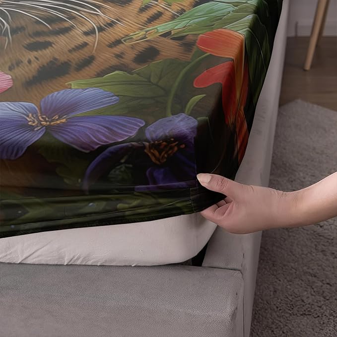 • ✔️【Twin XL Size】: Elevate your bedroom decor with our Leopard fitted sheets. Made from high-quality microfiber, they offer ultimate comfort and style. The set includes 1 Fitted Sheet (39"W x 80"L x 16"H) and 2 pillowcases (20" x 30"). (No flat sheet)