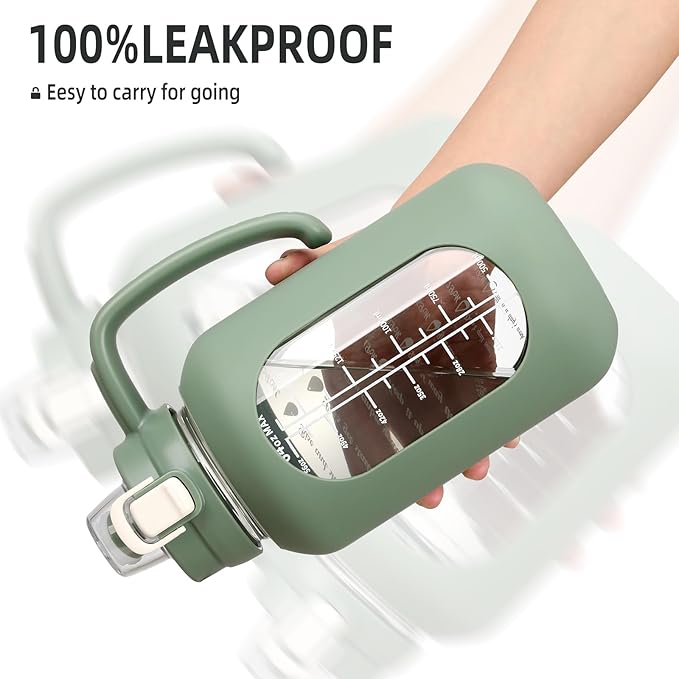 • 【Motivational Quote & Time Marker】Olivego 64 oz glass water bottle can remind you reach your goals of drinking all days with funny inspirational quote and time marker.These aesthetic water bottles will help you reach your health goals wherever your day takes you.