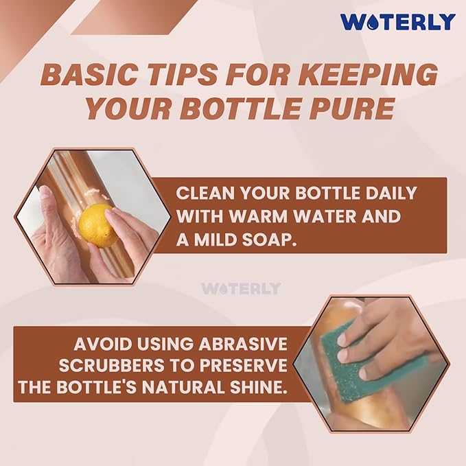 • ✅ PRODUCT MATERIAL & TYPE : WOTERLY Copper Bottle is made up of Premium quality copper comes with leak proof facility & Set of 2 Copper Glass For Drinking (32 oz/1000ml)