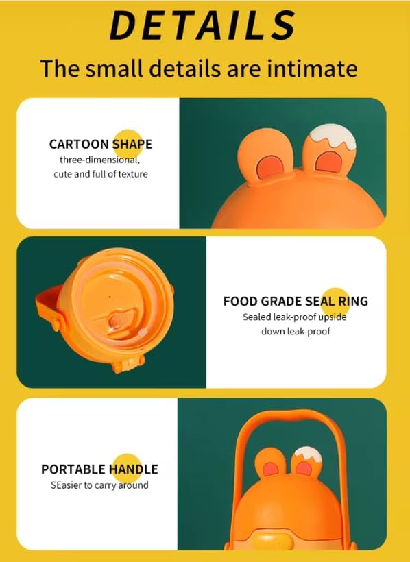 Numbers and Maths Symbols Design Kids' Water Bottle with Straw for School or Travel; 15oz (430ml) Stainless Steel water Bottle; Portable Handle with Detachable Buckle (Orange), CZMX-30031