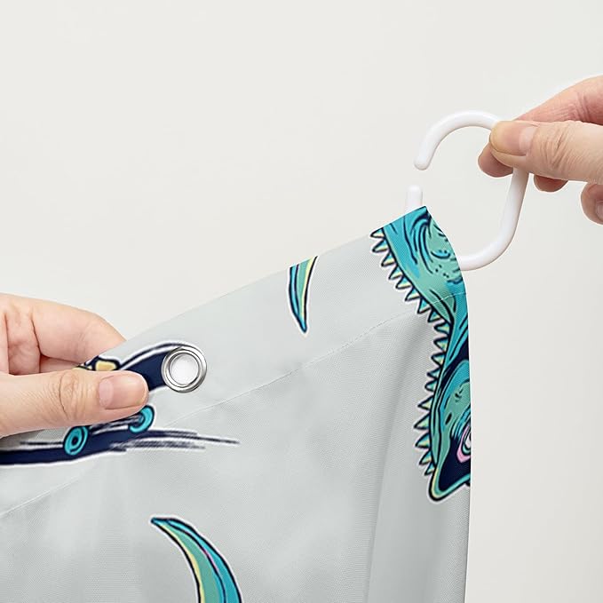 AILONEN Cute Dinosaur Kids Shower Curtain,Sport Cool Dinosaur Bath Curtain Gifts for Boys Teens,Skate Dinosaur Polyester Waterproof for Bathroom with 12 Plastic Hooks 72" W*84" H