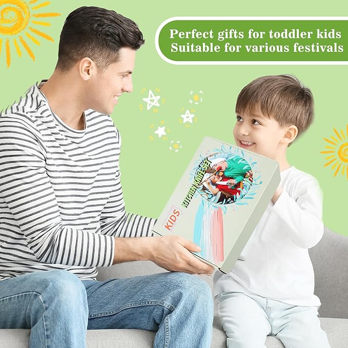 • 【Wide Applications】These toddler cooking sets can assist your child in safely cutting soft items like vegetables, fruits, cakes, cheese, and more. These kids knives set can be used in many occasions, such as family gatherings, picnics, birthday parties, parent-child activities, and so on, adding funny to these occasions.