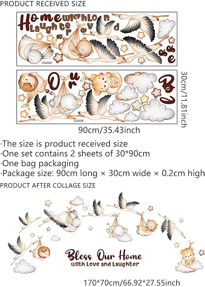 • 【Product Size】: Wall stickers: 30 cm × 90 cm * 2 (11.8 inch * 35.4 inch) * 2. The display size on the wall: 170 cm x 70 cm (66.9 inch* 27.6 inch), you can also paste it according to your preference.