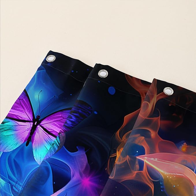 AILONEN Sugar Skull Shower Curtain for Bathroom,Blue and Red Smoky Skull Bath Curtain Decoration,Starry Butterfly Skull Skeleton Print Waterproof Shower Curtain with 12 Plastic Hooks, 48" W*72" H