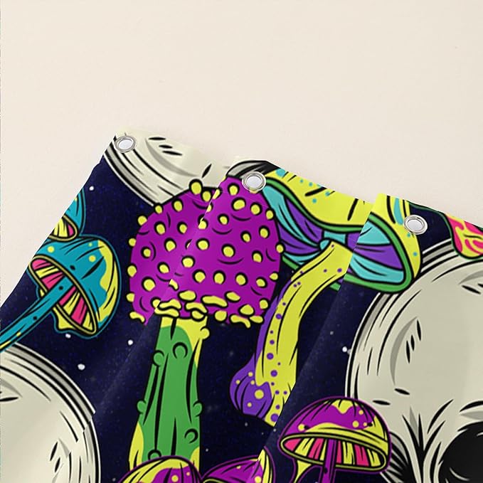 AILONEN Skull Shower Curtain for Bathroom,Mushroom Skull Bath Curtain Decoration,Fantasy Fungus Skeleton Print Waterproof Black Curtain with 12 Plastic Hooks, 72" W*84" H