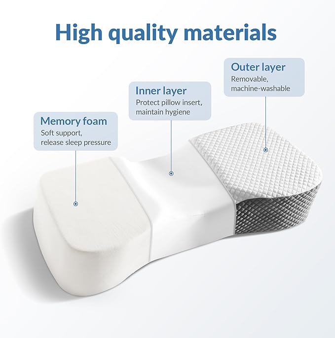 • Designed for Side Sleepers:With an ideal height of 6.5 inches, this pillow is specifically designed for side sleepers. It ensures your spine stays naturally aligned while sleeping, reducing pressure on your neck and shoulders, and helping you wake up without any aches.