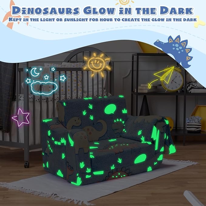 • GLOW IN THE DARK: Let your child's imagination take flight with our versatile toddler couch fold out, just put it in the sun (like charge the glow) or kept in the light for 3-5 hours, and partial pattern glows beautifully in the dark, creating a unique and cozy atmosphere. Perfect for reading, TV watching, or kicking back for family time,etc
