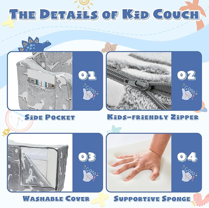 • GLOW IN THE DARK: Let your child's imagination take flight with our versatile toddler couch fold out, just put it in the sun (like charge the glow) or kept in the light for 3-5 hours, and partial pattern glows beautifully in the dark, creating a unique and cozy atmosphere. Perfect for reading, TV watching, or kicking back for family time,etc
